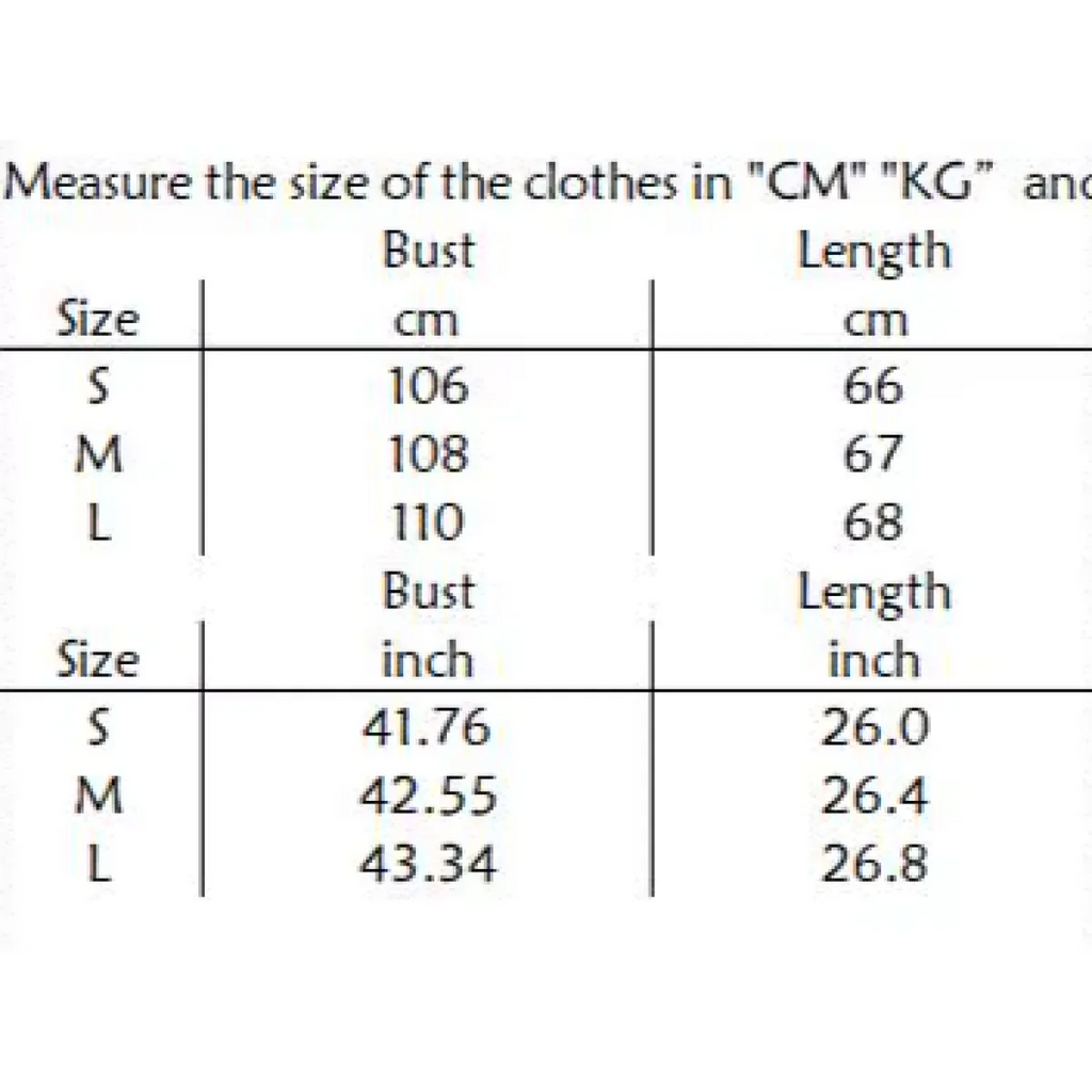 Size | Bust (cm) | Length (cm) | Bust (in) | Length (in) |